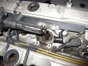 W202(C280) 初回ご入庫の時からプラグホールのオイル混入を危惧していたので、とうとうその時が来てしまいました。(エンジン振動が止まらない)1044エンジンなのでヘッドカバーを脱着してガスケットの交換をしたいところですが、今回はプラグホールを清掃して、プラグとコイルを交換しました。写真でうまく撮れなかったのですが、ビックリ!以前にプラグを交換した際にカメ虫が入ってしまったようで、化石化したカメ虫発見!!昆虫はオイルの臭いが好きなので、オイル関連の修理をするときは素早く作業しなくてはね!と、最近ちょっと暖かくなり動作が鈍くなった自分に、喝!をいれました。